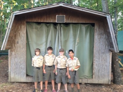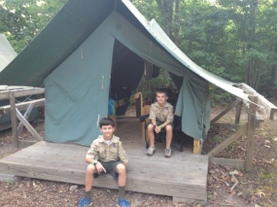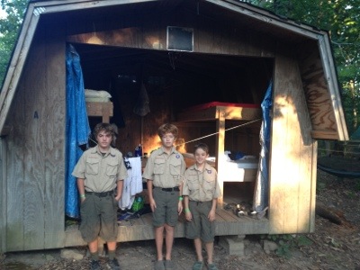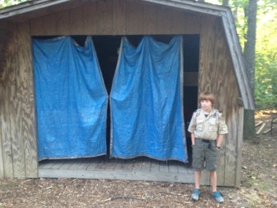 (The last shot is our older Scout tent before the singing to get them out of the tent.) You’ll notice some tents and some Adirondacks. (yes, shed would also substitute for adirondack!) We arrived a little later than planned and had slim pickings with the other Troop in our campsite taking the nicer tents. Thought it would work better with 4 in a shed, but of course it back-fired. Had trouble getting them to sleep! But, they self-corrected and spread out to some empty tents, thus the mix of tents and sheds.