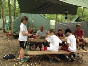 Lunchtime! Posted on July 8, 2013 by mjchurchman Quick snap from lunchtime. We went to Swimming, Kayaking, Communications, Emergency Prep, among many others. Now some downtime before braving the climbing wall this afternoon! Share this: Share on X (Opens in new window) X Share on Facebook (Opens in new window) Facebook Like Loading... Related