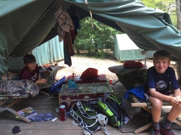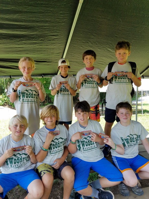 I can’t believe we will be heading home in the morning, it has been a fantastic week. The weather was ideal with cool nights and beautiful sunny days. The scouts are worn out as each one logged in an average of 5-7 miles of walking per day. Our first year scouts completed their Mountain Man course with a ceremony and new shirts to celebrate (see pic below). After lunch everyone enjoyed their last afternoon of free time and spent every last nickel they had on junk from the Trading Post. After our bbq dinner we attended the closing campfire to conclude the week. Hopefully everyone will shower tonight so we can hit the road first thing in the morning. Be prepared for lots of dirty laundry. Until next year………