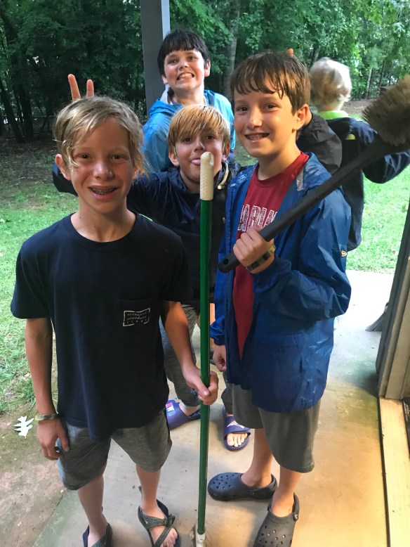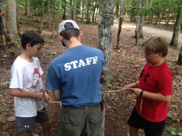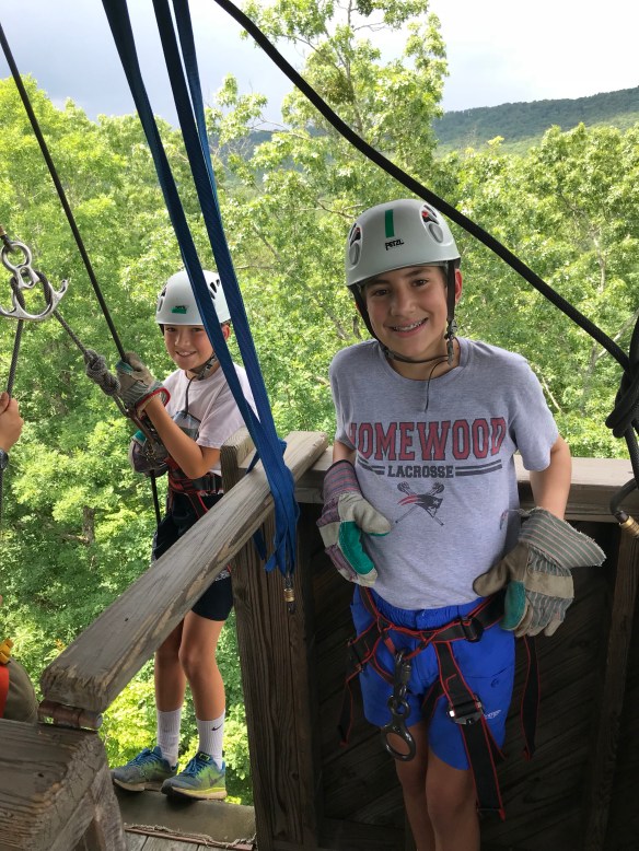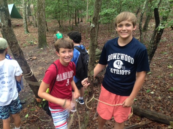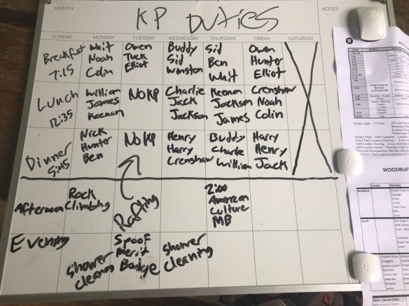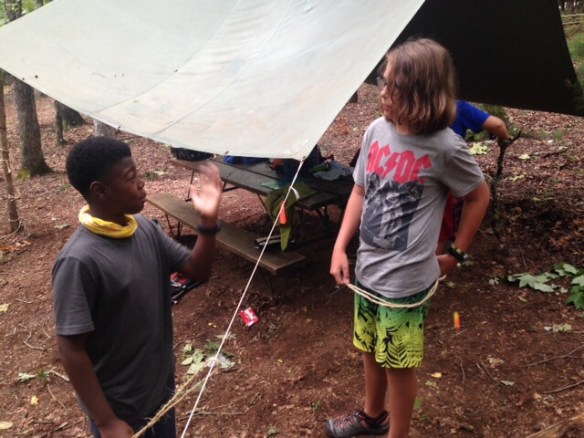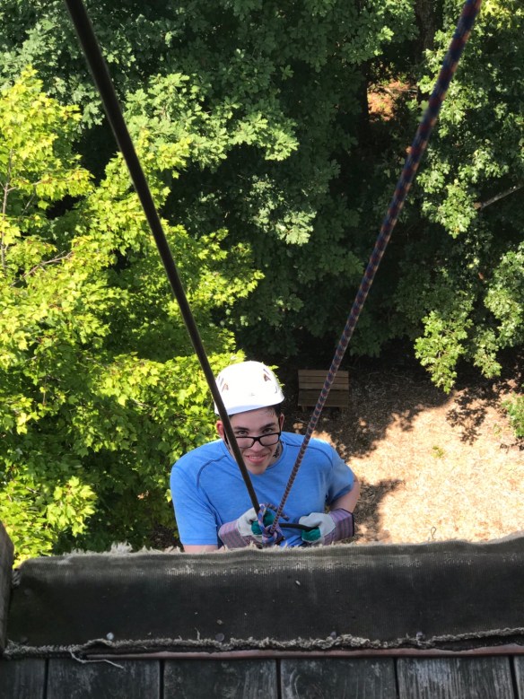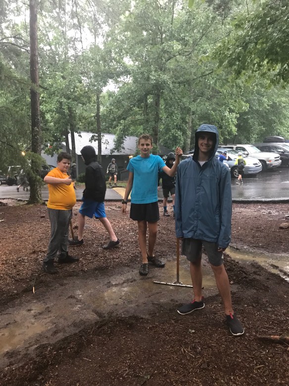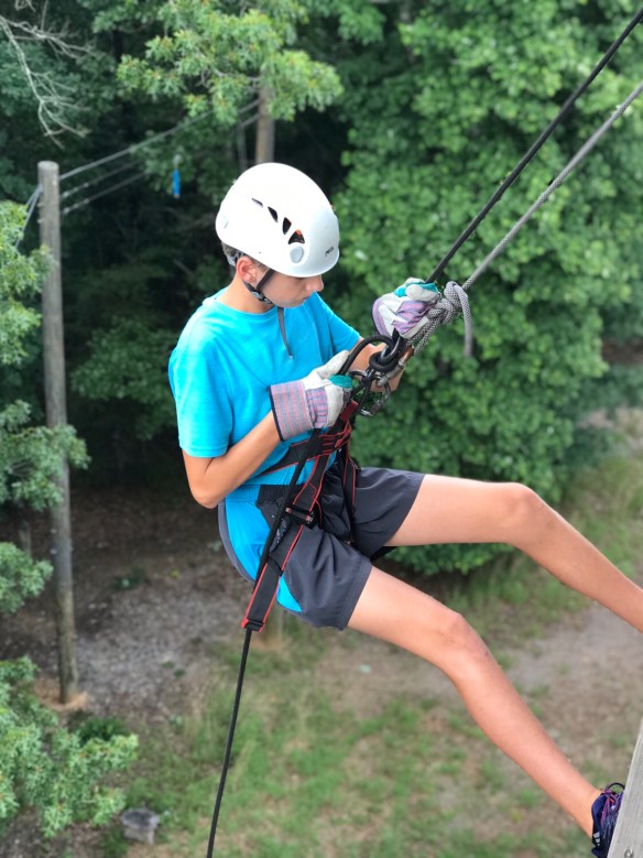 We had a great day yesterday settling into camp. After a good first nights sleep, we went to morning assembly, breakfast and then made sure everyone made it to their merit badges classes. We then had lunch and went to the climbing tower, where we bouldered, climbed the chimney and repelled. The storms rolled in late yesterday and evening, but we had dinner, cleaned the bath house and had our PLC. We’ve also began carrying our troop flag and playing our trumpet in camp (mainly Homewood fight songs!) to let camp know Troop 79 has arrived! Another great day at Woodruff!