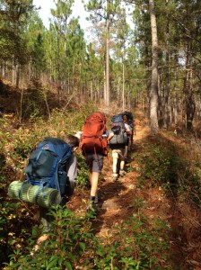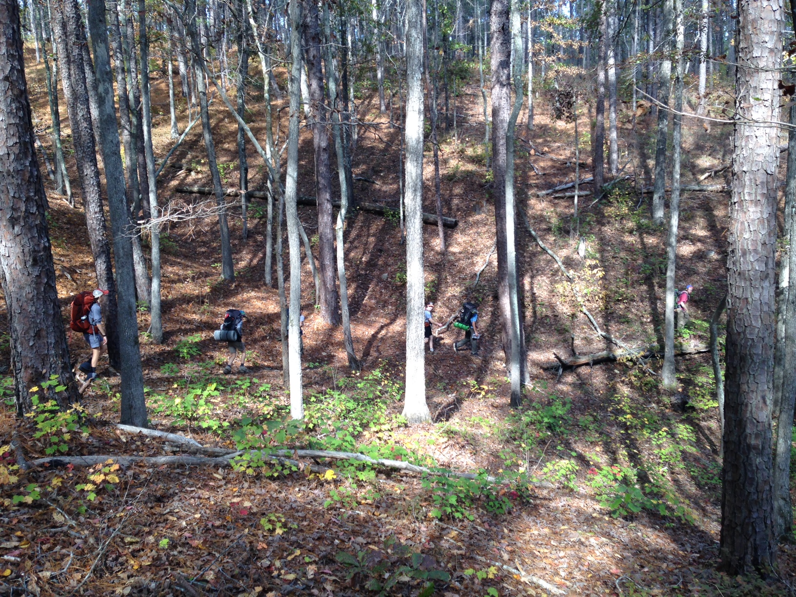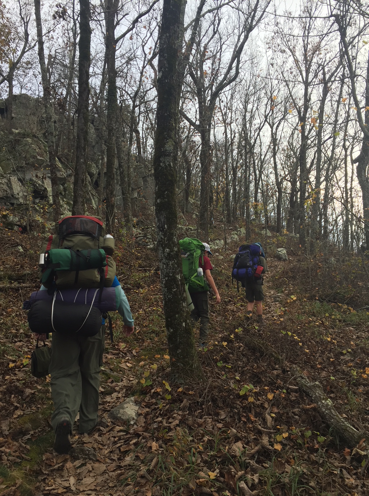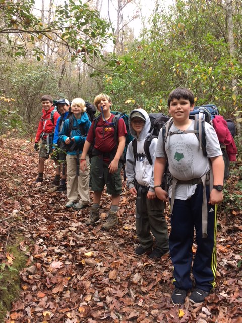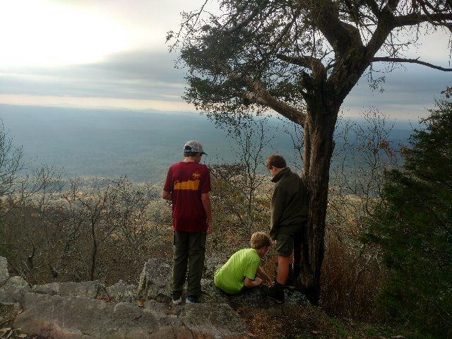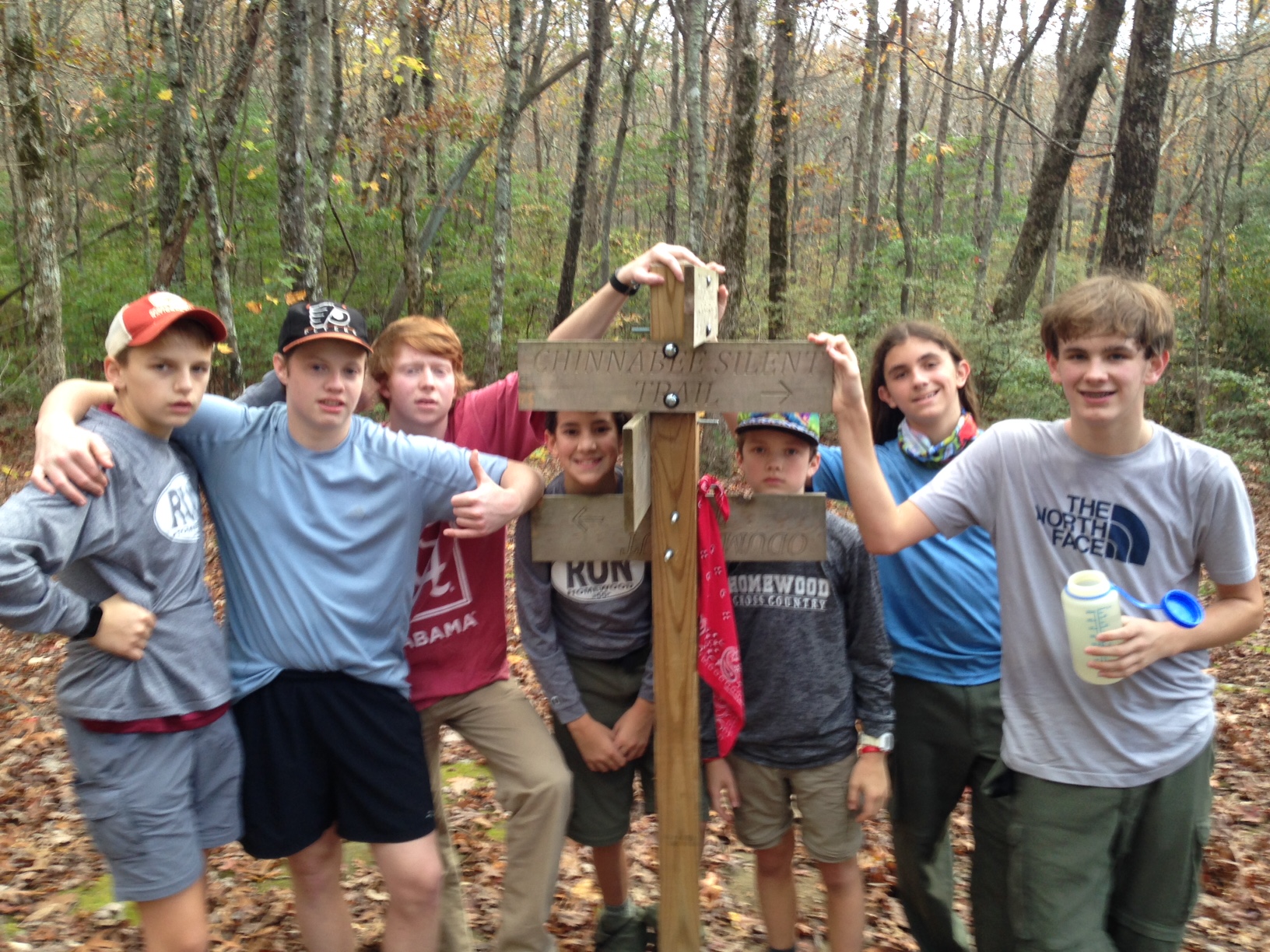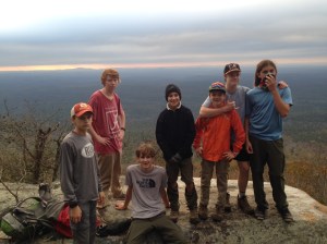 Troop 79 had a memorable campout and backpacking trip to the Pinhoti Trail system near Cheaha State Park and the Cheaha Wilderness of the Talladega National Forest. We were fortunate enough to have 7 adults accompany the 17 Scouts so we split up into some different trails based on experience and time available during the weekend. One group began at Lake Chinabee and followed the Chinabee Silent Trail for 6 miles uphill to join the Pinhoti and then followed the Pinhoti for 3 miles to camp at McDill Point. A second group of scouts started at the Cheaha Park trailhead followed the ridge line across Hernandez peak and went directly to McDill Point. Our first time backpackers traversed the Cave Creek trail system and covered between 5 and 50 miles (depending on the accounts!) and camped along the trail. Conditions at McDill point were very windy and cool which made for some memorable hammock and tent camping and meal preparations. The Cave Creek crew found their campsite provided a bit of shelter from the wind and had a campfire. Everyone enjoyed their freeze dried Beef Stroganoff for dinner. Scouts logged between 5 and 10 miles and emerged with a few memories that they will hopefully carry with them as they Follow the Trail.