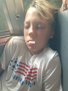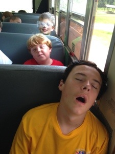 We’ve had a pretty good Day 2. Tuesday was river day so we were excited. Of course, some used the chance to catch up on rest on the bus ride to the river: