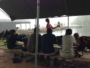 Now, we have had our first rain. And it is a drencher! Unfortunately, guys taking Wilderness Survival were going out to spend the night in the wilderness to show they could survive. They only brought 5 things and were going to build shelters. I’ll let you know how it went tomorrow. In the meantime, here’s what you do in the rain: