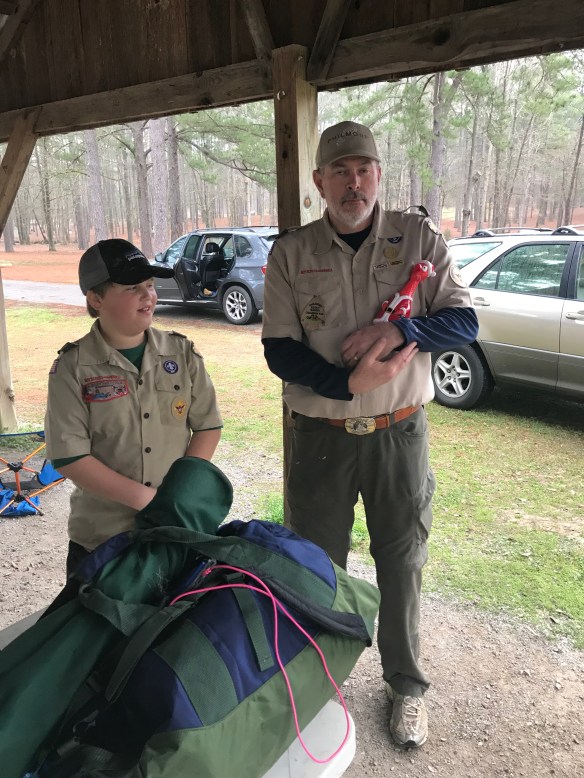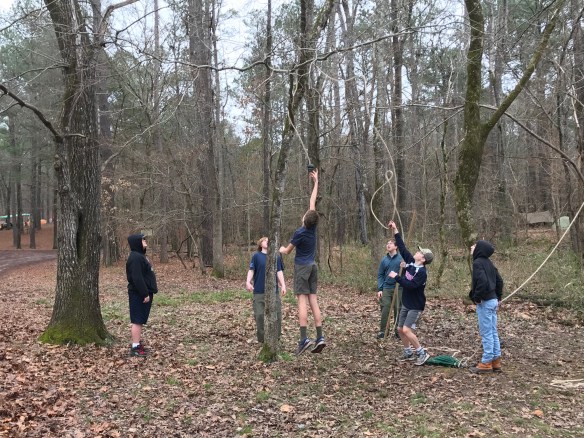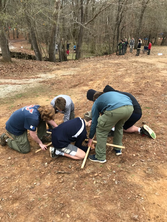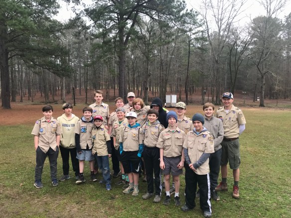 The troop had a great time at this years winter camporee. In addition to competing in so many classic scouting events: orienteering, string burn, etc we also had the opportunity to hang out with friends from other troops all over Birmingham. We were also able to win the following events: Pedro patrol – 1st place in flag pole relay, rain fly relay, Roman chariot race and 3rd place in bear bag relay. Clout gang won 2nd place in Roman chariot race, and pancake flip. We attended the bonfire, entered the Dutch oven cooking contest, and managed to stay dry (for the most part) all weekend. A great time was had by all, and we’re looking forward to next year!