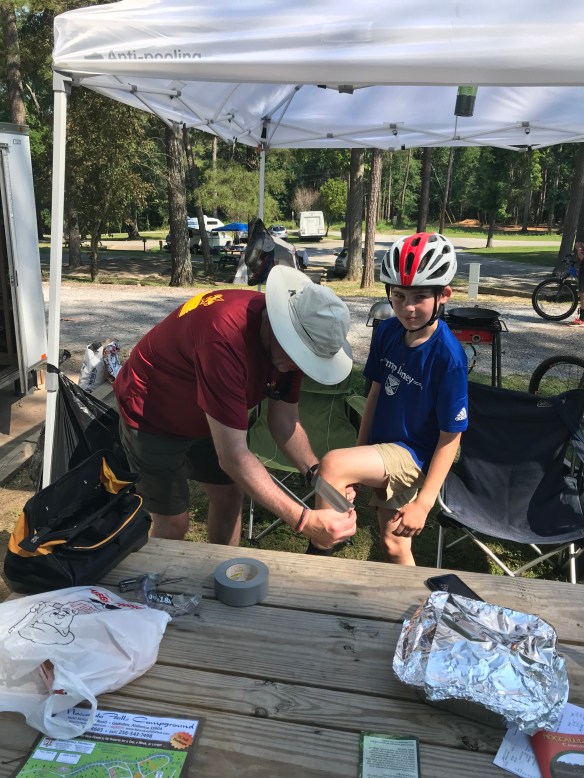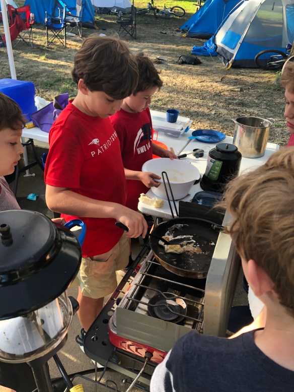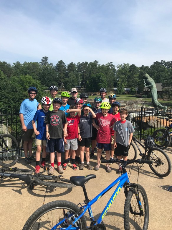 The troop had a great trip to Noccalula Falls to welcome the Eagle patrol and go mountain biking. The campground had several trails, and our favorites were the Mine Drop, Rooster Ridge, and the Family Loop. In addition to riding, the older scouts taught the Eagle patrol how to set up tents, patrol area, how to cook and clean. We also had a campfire on Saturday night with songs, skits and ghost stories. Overall, this was a great campout for all involved!