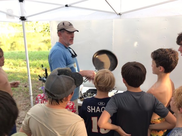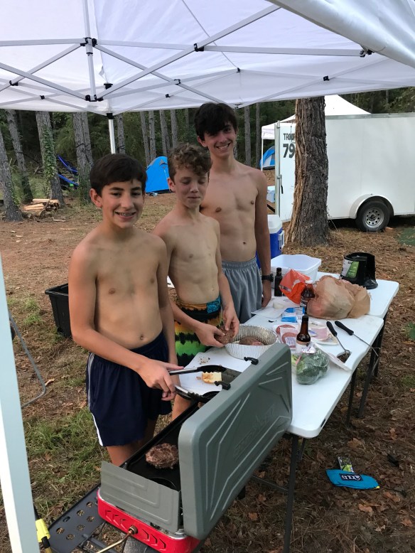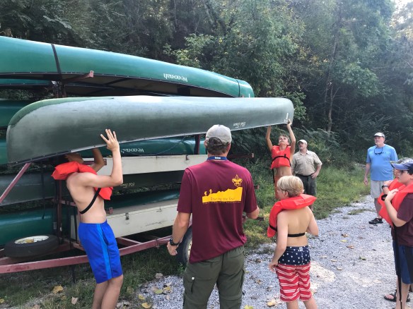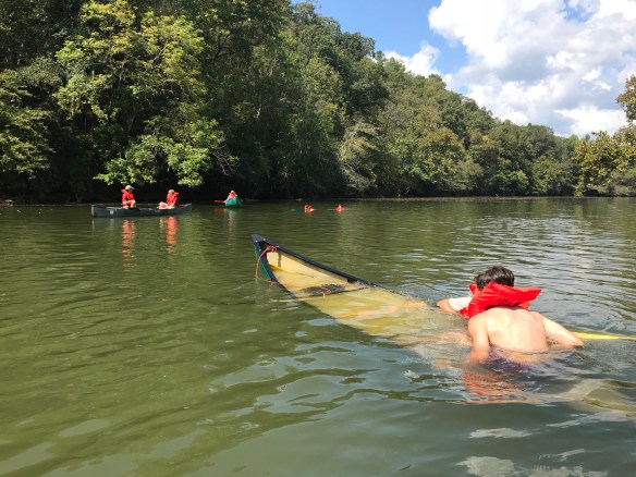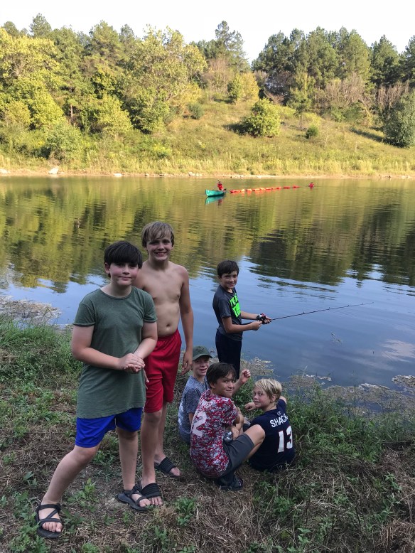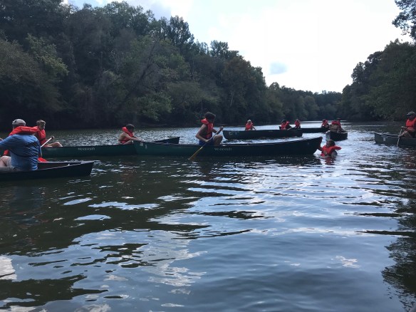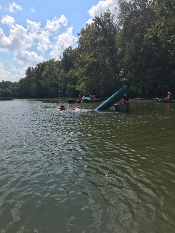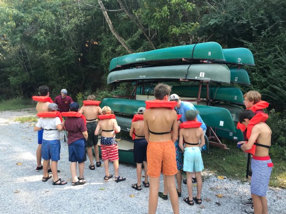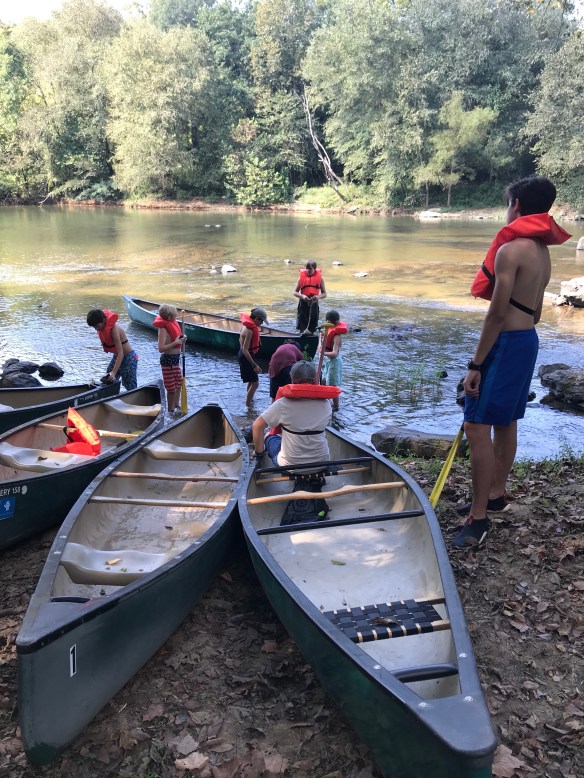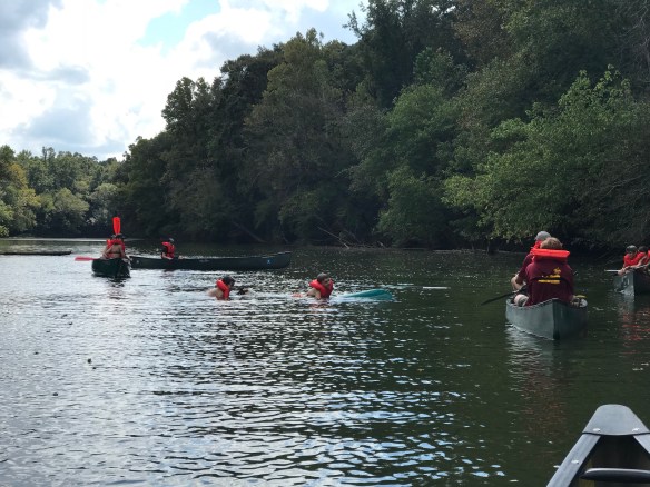 The troop had a great trip to Living River, a camp in Montevallo, located on the Cahaba river. After leaving the church on Saturday morning, we arrived to camp and quickly changed into swim suits and hit the river to work on our canoeing skills. We practiced paddling strokes, changing spots in the boat, entering and exiting the water, submerging our canoe and emptying it, and finally paddling a submerged canoe. We then portaged our canoes from the river to the lake, where we swam, fished and set up camp. We had leisurely morning with a full breakfast, before packing up and heading home!