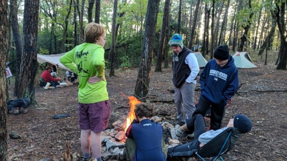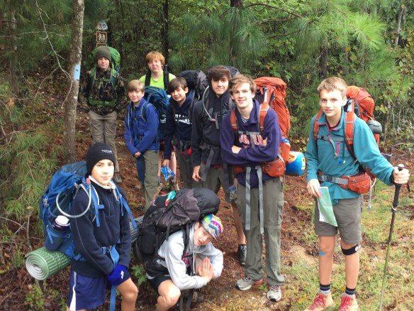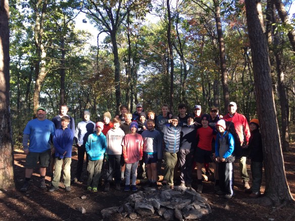 The troop had a great trip to the Pinhoti trail this weekend. We had 2 crews of 8-9 scouts, and 3 adults with each crew as we divided by rank and experience. Our younger guys had a six mile trek on Saturday, and our older scouts had a more strenuous 8 mile hike. Both crews met at McDill point before sunset, and woke up on Sunday and hiked out 2 miles as a troop. This was the first time for several scouts to go backpacking. Weather was almost perfect and dipped to lower 40”s at night. Scouts stayed warm by the campfire and played cards in their tents after enjoying the scenic overlooks. Everyone ate well and replenished calories with cheese, crackers and pepperoni at lunch. Dinner included yummy freeze-dried meals and breakfast included hot oatmeal, bacon and pop tarts. It was a beautiful weekend to be outside in the woods!